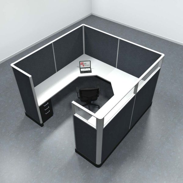 8×8 Office Cubicle Workstation with 67″ Panels – Glass & Fabric Options