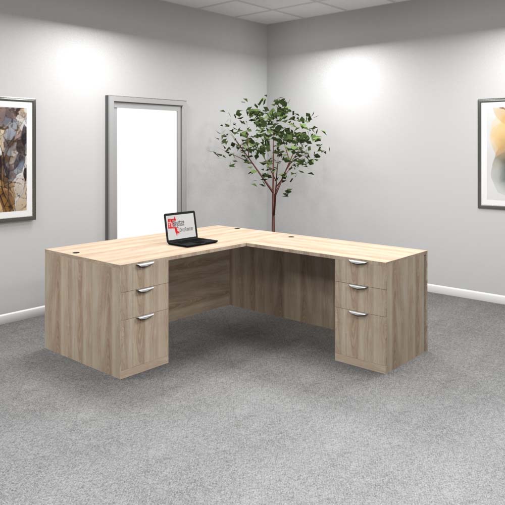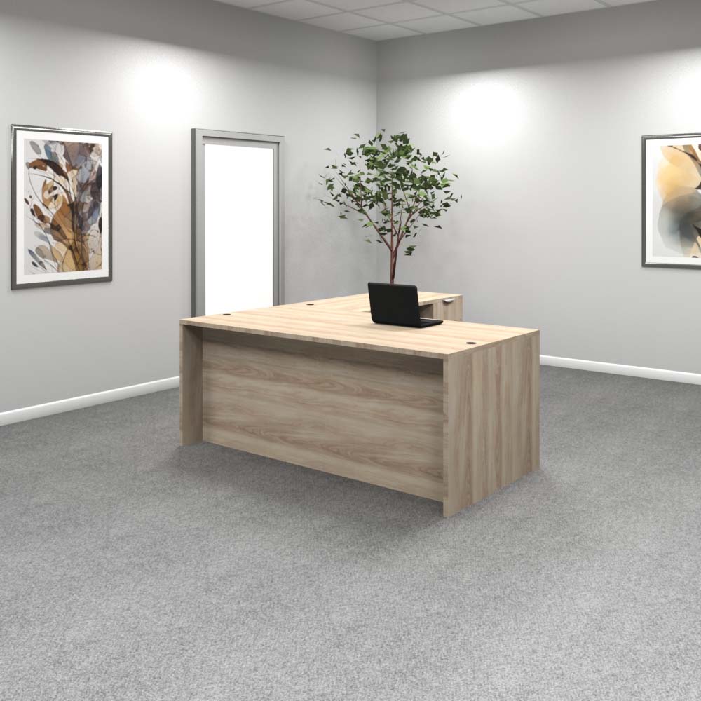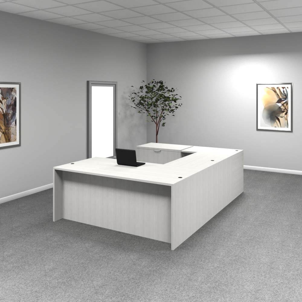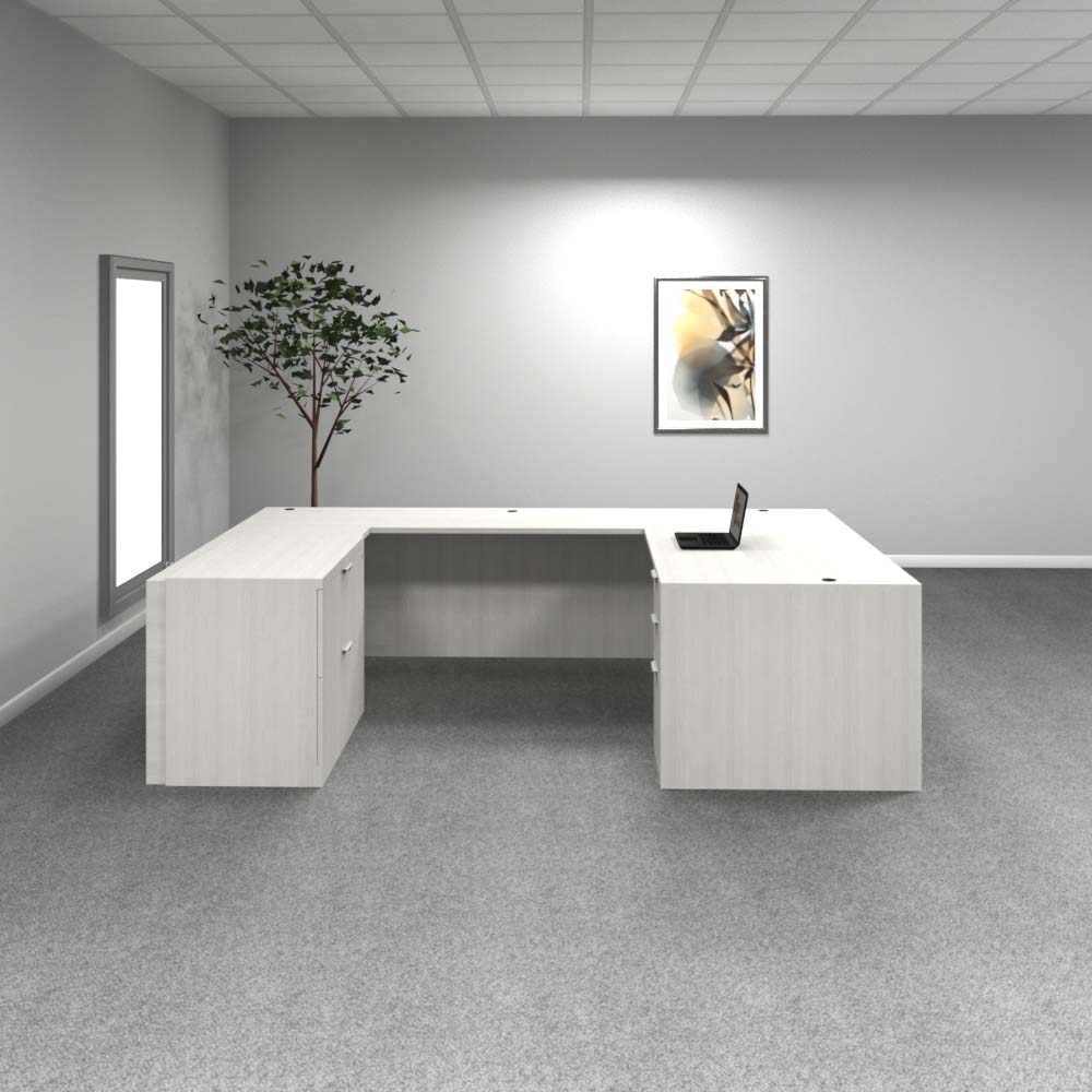 The standard for executive workspaces, this 72” x 30” desk in Acadia White offers a wide surface and a locking 3-drawer pedestal. Clean lines and durable construction make it a reliable choice. Available in 9 stocked colors.